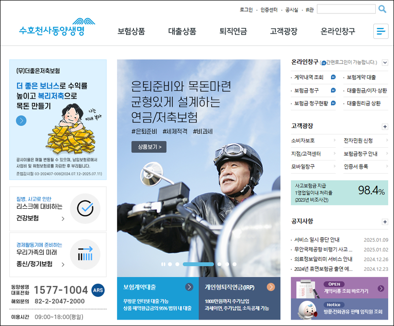 동양생명보험 홈페이지는 고객들이 쉽고 빠르게 필요한 정보를 찾을 수 있도록 직관적으로 설계되었습니다. 다양한 보험 상품의 상세 정보는 물론, 고객센터를 통해 빠른 문제 해결을 지원합니다.